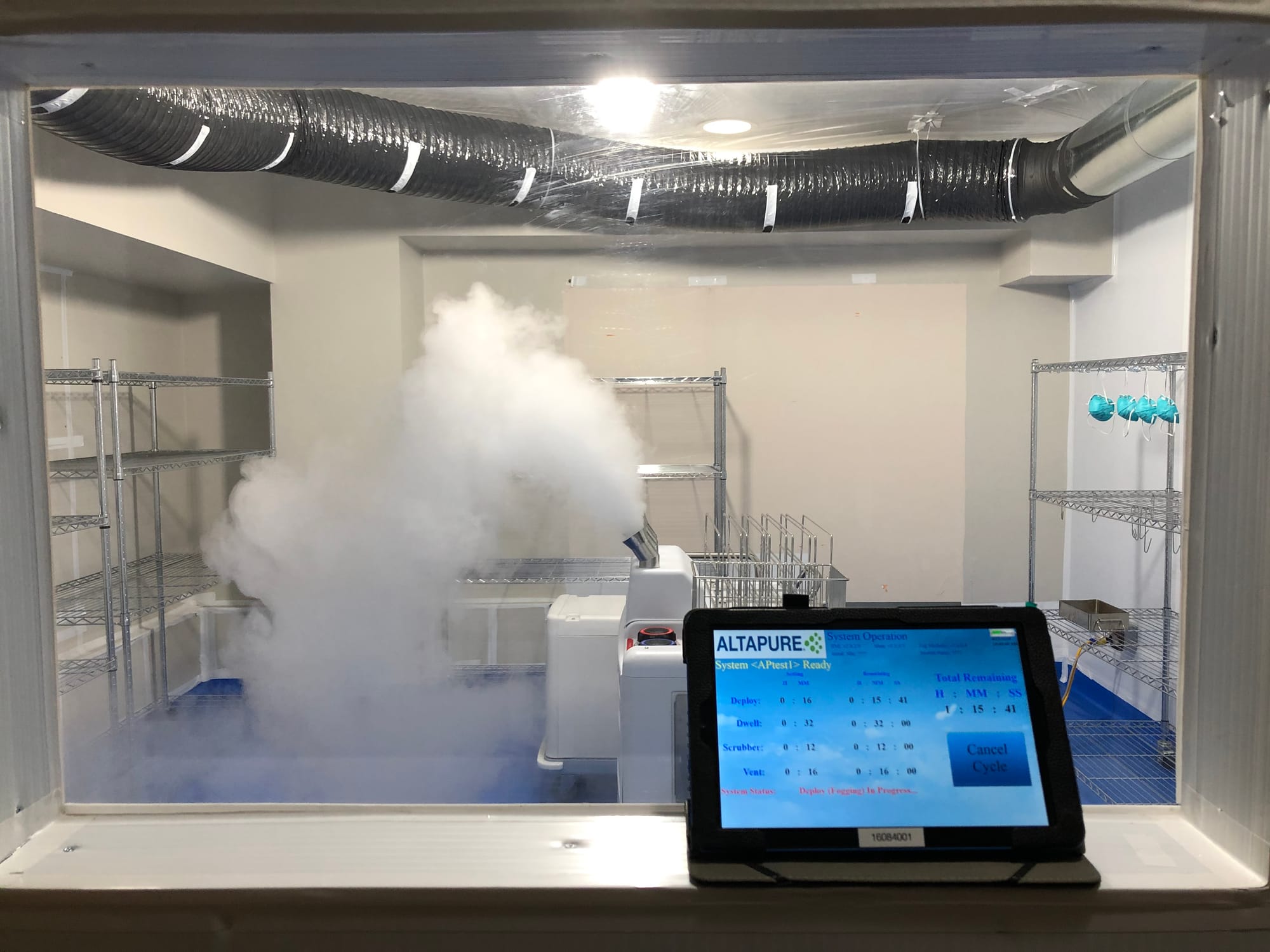 The decontamination room at University Hospitals where the N95 masks are disinfected using the per acetic acid method.